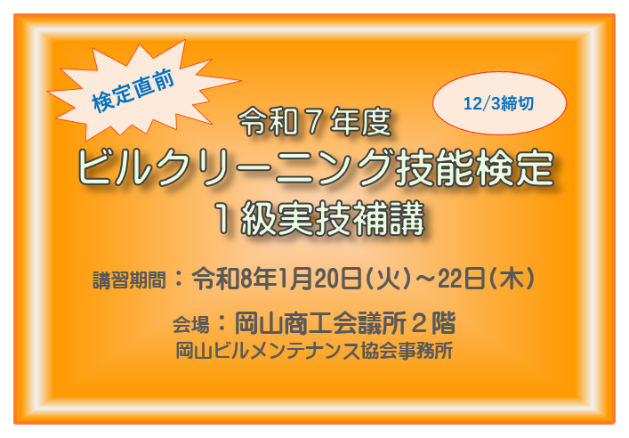 | ビルクリ―ニング技能検定 受付終了 | 全国ビルメンテナンス協会 |